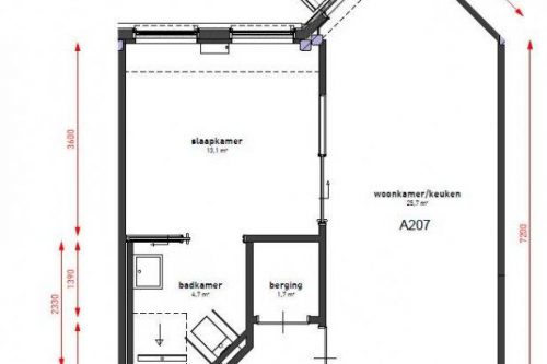 De slaapkamer is ruim opgezet en biedt voldoende plaats voor een bed en kastruimte. De badkamer is praktisch ingericht en voorzien van een douche, wastafel én toilet, afgestemd op comfortabel en veilig gebruik. Daarnaast beschikt het appartement over een interne berging voor extra opslag.